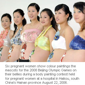 A worker puts up an ad for an adult toy and reproductive health exhibition at the Shanghai International Exhibition Center yesterday. The event will open today and runs through Sunday.