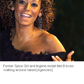 Former Spice Girl and lingerie model Mel B loves walking around naked.