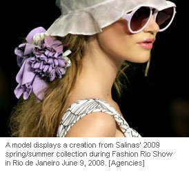 Models display creations from Salinas' 2009 spring/summer collection during Fashion Rio Show in Rio de Janeiro.