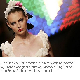 Bridal reflection: Models present wedding gowns by Spanish designer Hannibal Laguna during Barcelona Bridal fashion week.
