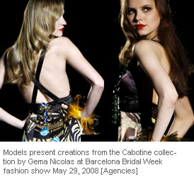 Models present creations from the Cabotine collection by Gema Nicolas at Barcelona Bridal Week fashion show May 29, 2008.