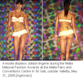 A model displays Jolidon lingerie during the Malta National Fashion Awards at the Malta Fairs and Conventions Centre in Ta' Qali, outside Valletta, May 31, 2008.