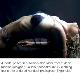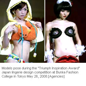 A woman poses during the "Triumph Inspiration Award" Japan lingerie design competition at Bunka Fashion College in Tokyo May 26, 2008.