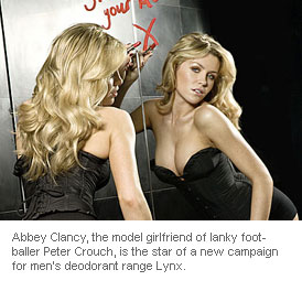 Abbey Clancy, the model girlfriend of lanky footballer Peter Crouch, is the star of a new campaign for men's deodorant range Lynx.