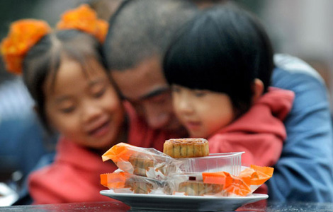 Children prepare moon cakes to celebrate the upcoming Mid-Autumn Festival in Shangdong province on Sept 7, 2011.