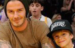 David Beckham poses with his children (L-R) Brooklyn Beckham, Cruz Beckham and Romeo Beckham during the NBA basketball match between Los Angeles Lakers and Phoenix Suns at Staples Center on February 17, 2012 in Los Angeles, California.