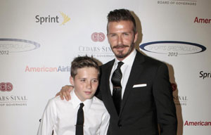 David Beckham and son attend the 27th Anniversary Sports Spectacular benefiting Cedars-Sinai Medical Genetics Institute in Los Angeles, California May 20, 2012.