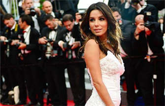 Eva Longoria touches ground at JFK airport in her white dress as she arrives from Los Angeles on February 17, 2012.