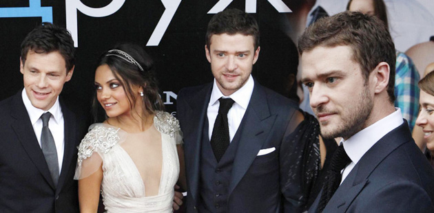 Justin Timberlake and Mila Kunis arrive at the premiere of "Friends with Benefits" at the Oktyabr cinema in Moscow.