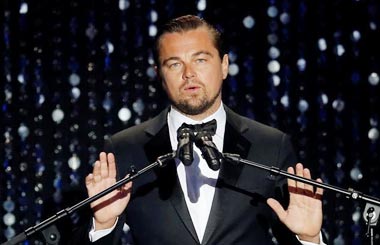 Actor Leonardo DiCaprio, 41, who has yet to win an Oscar, gets standing ovation.