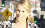 Actress Charlize Theron arrived at a friend's house in Los Angeles, California on February 5, 2012 for a Super Bowl party.