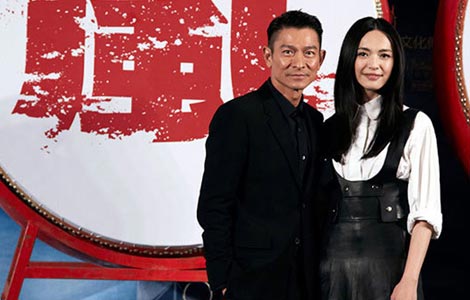 Chinese actor Andy Lau and actress Yao Chen attend a news conference for their upcoming movie "Firestorm" on Oct 28, 2013.