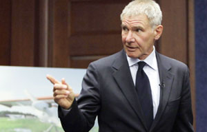 Actor and pilot Harrison Ford attends the Senate General Aviation Caucus meeting to discuss the importance of the aviation industry on Capitol Hill in Washington October 18, 2011.