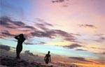 Picture taken on July 22, 2012 shows tourists walking down the Tamarindo Beach, 250 kilometers northwest of San Jose city, Costa Rica.