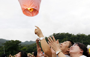 Lanterns were lit in celebration of the Mid-Autumn Festival in northern Taiwan province, Sept 12, 2011.