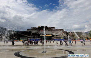 Tourists are seen at Potala Palace Square in Lhasa, southwest China's Tibet Autonomous Region, July 10, 2011.