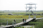 Travellers visit the wetland of Dulu River nature reserve areas in Luobei county of Hegang, northeast China's Heilongjiang province.