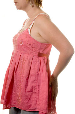 pudgy middle. And, when the wearer lifts her arms, the stomach shows, assaulting