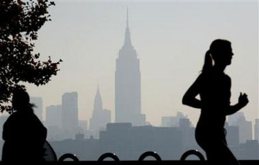 The haze shrouded skyline of New York is a backdrop to a jogger running along the Hudson River in Hoboken, New Jersey August 3, 2006. [Reuters] Tests on overweight people show that a calorie is just a calorie, whether lost by dieting or by running, they said. They found there is no way to selectively lose belly fat, for instance, or trim thighs. And their carefully controlled study added to evidence that adding muscle mass does not somehow boost metabolism and help dieters take off even more weight. "It's all about the calories," said Dr. Eric Ravussin of the Pennington Biomedical Research Center, part of Louisiana State University in Baton Rouge. "So long as the energy deficit is the same, body weight, fat weight, and abdominal fat will all decrease in the same way." Ravussin said the study, published in the Journal of Clinical Endocrinology & Metabolism, is one of the few done under controlled conditions that can actually demonstrate what happens to a human body while dieting and exercising. Ravussin's team has been testing volunteers for another reason -- to see if taking in fewer calories helps people live longer. Strict diets have been shown to help animals from worms to dogs live longer, but it takes longer to study monkeys and humans. They tested 24 people, 12 who ate a calorie-restricted diet, and 12 who dieted and also exercised five times a week for six months. The dieters ate 25 percent less than normal, while the exercisers reduced their calorie intake by 12.5 percent and increased their physical activity to lose an extra 12.5 percent in calories. Another 10 volunteers acted as controls. All food was provided by the university in carefully measured portions for most of the study. The volunteers in both groups lost about 10 percent of their body weight, 24 percent of their fat mass, and 27 percent of their abdominal visceral fat. Visceral fat is packed in between the internal organs and is considered the most dangerous type of fat, linked with heart disease and diabetes. The distribution of the fat on the body was not altered by either approach -- helping prove that there is no such thing as "spot reducing," Ravussin said in a telephone interview. This suggests that "individuals are genetically programmed for fat storage in a particular pattern and that this programming cannot easily be overcome," he added. Ravussin has published other studies that also dispute the idea that exercise builds muscle that helps people lose weight. "If anything, highly trained people are highly efficient, so they burn fewer calories at rest," Ravussin said. Dieting alone also did not appear to cause the volunteers to lose muscle mass along with fat, Ravussin's team found. "There is a concept that if you exercise, you are going to lose less of your muscle," he said. But his team found no evidence this is true. Ravussin believes exercise is crucial to health, however. "For overall health, an appropriate program of diet and exercise is still the best," he said. His team found some small suggestion that cutting 25 percent of calories by either diet or diet and exercise might extend life. "We found that 2 of the biomarkers of aging were improved -- core temperature was 0.4 to 0.5 degrees C less," he said. "Insulin, which has been shown to be a biomarker of aging, was reduced," Ravussin said. That finding was published in the Journal of the American Medical Association last April. |