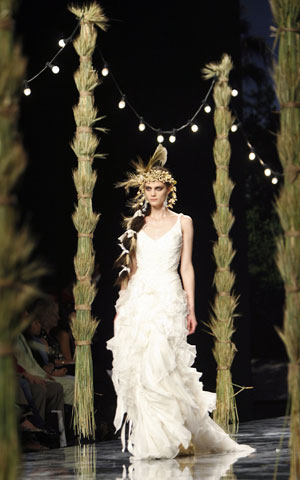A model presents a creation from Victorio & Lucchino collection at Barcelona Bridal Week fashion show May 30, 2007.[Reuters]