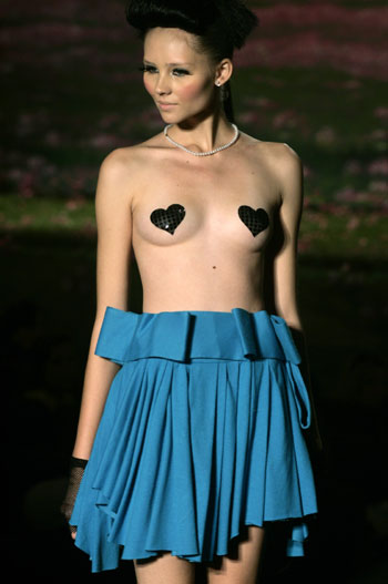A model wears a creation from Sommer's 2008 spring/summer collection during Fashion Rio Show in Rio de Janeiro June 6, 2007. [Reuters]