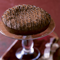 INGREDIENTS 1/4 cup cocoa, plus 1 tablespoon for dusting 1 cup flour 1/2 teaspoon salt 1/2 teaspoon baking powder 1/4 teaspoon cinnamon 1/4 teaspoon cayenne pepper 8 ounces bittersweet chocolate 1/2 cup plus 2 tablespooons unsalted butter 4 large eggs 1/2 cup sugar 1/3 cup dark brown sugar 1 teaspoon vanilla extract DIRECTIONS 1. Make the cake batter: Preheat oven to 350°F. Butter one 9-inch round cake pan and line the bottom with parchment paper. Butter the parchment paper and dust the pan with 1 tablespoon cocoa. Set aside. In a medium bowl, sift together the flour, 1/4 cup cocoa, salt, baking powder, cinnamon, and cayenne and set aside. In a double boiler over simmering water, melt 6 ounces chocolate and the butter. Set aside. In a large bowl using an electric mixer set on medium high, beat the eggs and sugars until the mixture thickens and increases in volume—about 5 minutes. Reduce mixer speed to low, add the chocolate mixture and the vanilla, and beat until combined. Gradually add the four mixture and beat until incorporated. Pour batter into prepared pan. Bake on the middle shelf of the oven until cake springs back when lightly touched in the center—30 to 40 minutes. 2. Make the glaze: Cool cake in the pan on a wire rack for 20 minutes. Invert the cake onto the wire rack, remove the parchment paper, and cool completely. Transfer cake to a serving dish. Melt the remaining bittersweet chocolate and drizzle over the top of the cake.