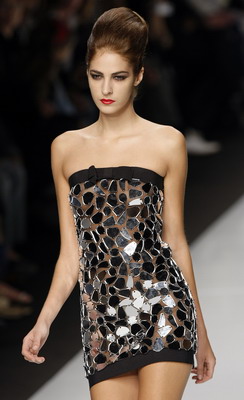 A model wears a creation as part of Roccobarocco's Spring/Summer women collection 2008 during Milan fashion week September 23, 2007. [Reuters]