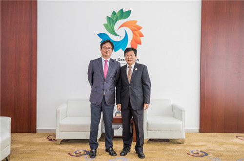 阿斯塔納世博會中國館執行館長姚瑞與韓國館館長就世博會運營和組織事務進行交流