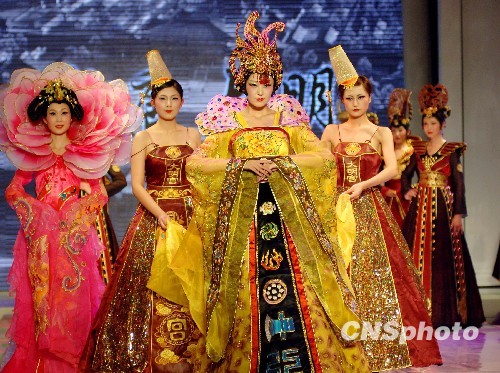 With silks, satins and embroideries on them, the models were elegant and as graceful as imperial concubines, palace maids and lady officials, who once lived the Daming Palace, an imperial palace in the Tang dynasty (AD 618-907).