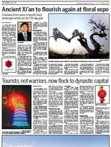 A performer parades during the first test run of the International Horticultural Exposition 2011 at the exposition park in Xi'an, capital of northwest China's Shaanxi Province, April 20, 2011. Over 300 carnival-like parades would be held during the International Horticultural Exposition 2011, which would kick off here on April 28, 2011. (Xinhua/Liu Xiao)