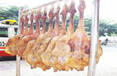 Residents of the city of Zhangping traditionally prepare wind-dried ducks every winter. They first remove the birds' feathers, then gut them and then flatten them by inserting bamboo branches in their bellies. Next, they coat the ducks with ground pepper, salt, and other seasoning according to taste, and then hang them