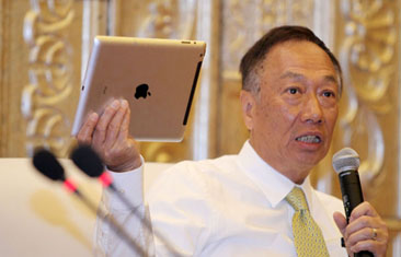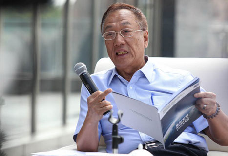 Terry Gou, chairman of the Foxconn Technology Group, meets press on July 21 during the Eco-Forum Global Annual Conference in Guiyang.