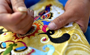 Members of the Miao ethnic group display folk arts for the public at a festival centering on the lusheng, an ancient reed-pipe musical instrument, in Kaili, Guizhou province, on Feb 27.