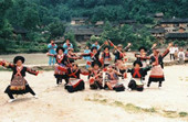 The Wood Drum Dance of the Miao ethnic group is also used in worship and involves a wooden drum and the lusheng, a reed-pipe. It is most popular in Gaopo and the village of Shilong in the Baiyun district.