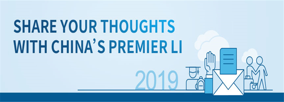 The Chinese government website, in cooperation with 20 online platforms, launched the initiative "Share your thoughts with China's Premier Li" on Dec 20, to collect public input on government work.