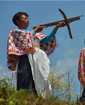 A bevy of young Miao people dance at a show at the ongoing Cultural and Art Festival of King Bamboo in Zhenning county, Southwest China's Guizhou province, March 31, 2015.