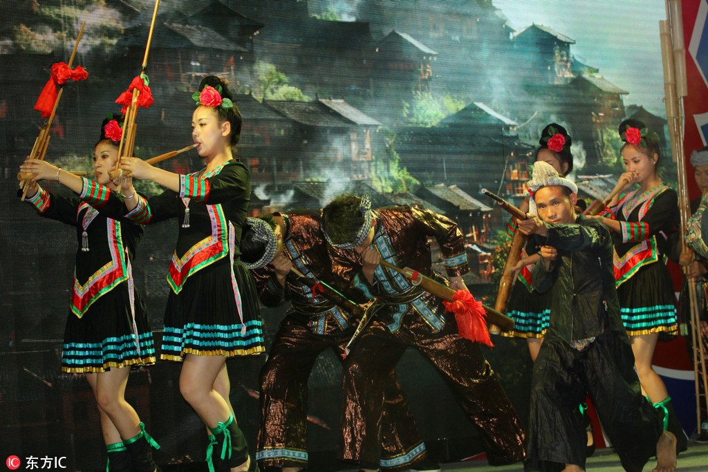 The Grand Song of the Dong Ethnic Festival opened on Monday with hundreds of Dong ethnic singers harmonizing during the opening performance in Congjiang county, Southwest China's Guizhou province.