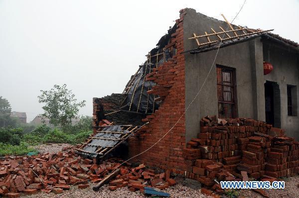 A house is damaged by tornado in Wuhan, central China's Hubei Province, July 13, 2010. Tornado and rainstorm hammered the city of Wuhan leaving great damages to local residents. (Xinhua/Zhou Mengrong)