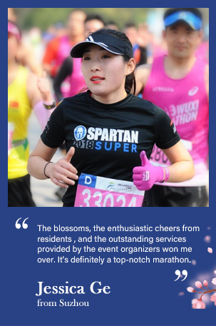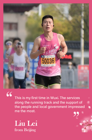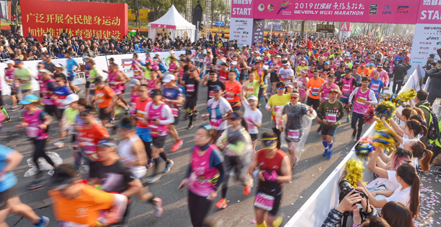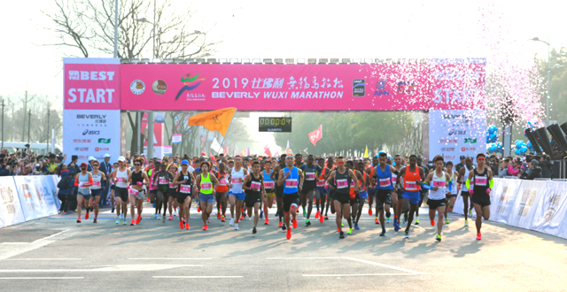 A total of 33,000 runners started off the 2019 Beverly Wuxi Marathon on March 24 beneath a blazing sun and a shower of pink flower petals.