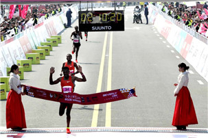 Negawo Asnake Dubre from Ethiopia took the title for the men's full marathon with a record-breaking time of 02:10:21.
