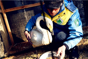 'Swan guard' devoted to protection of swans for over 40 years in East China