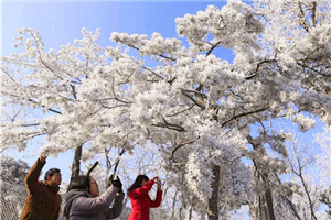Tourists take photos of the rime scenery at Paomaling scenic spot in Jinan, capital of East China's Shandong province.