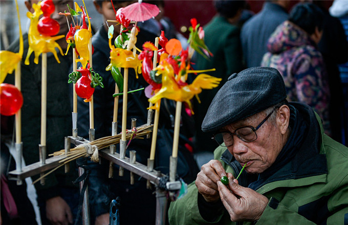 Wei Zhaozhong, 67, is a handicraftsman in Rizhao, Shandong province. He has been making painted clay sculpture for more than 50 years.