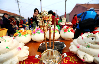 Locals celebrate Tianheng Sea Ritual in Huanglongzhuang village in Tianheng township of Jimo city, East China's Shandong province, March 16, 2017.