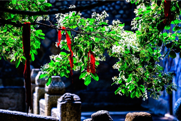 Chionanthus retusus trees begin to put forth their blossoms in early summer at the foot of Mount Tai in Tai'an, East China's Shandong province.