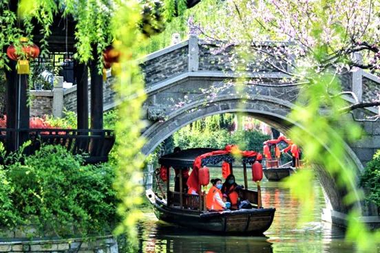 The season for admiring flowers has arrived in Taierzhuang ancient town, which is located near the Zaozhuang section of the Grand Canal.