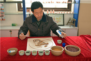 Folk artist Liu Lizeng can create a painting in with a unique style composition like those found in many genres.