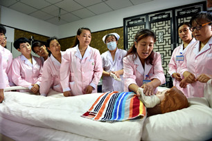 More housewives like Zhang now go out and earn money for their families with the nursing skills acquired during training luanched by Lyuliang city in Shanxi province.