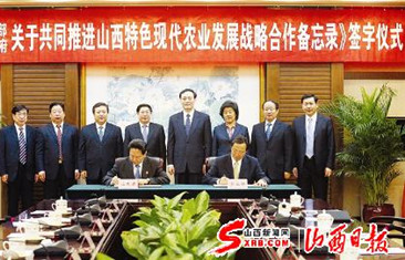 Shanxi province and the Ministry of Agriculture signed an agreement, in Beijing, on March 11, for strategic cooperation in developing Shanxi’s characteristic agriculture.