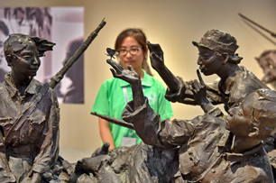 The 18-meter-long wood carving of Riverside Scene at Qingming Festival, one of the most renowned ancient Chinese works of art, was on display in Taiyuan on Aug 10.